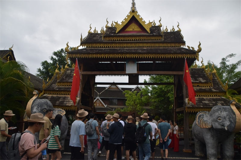在古納卡傣族文化園--曼賀納自然村寨(景區(qū)),古寨大門上掛著毛主席、周總理的大幅相片,傣家人世代不忘偉人的恩情。大家觀看了傣家人居住的吊腳樓的前世今生,并走進傣家人家,圍坐聆聽傣家風俗、文化,體味傣家人當下的幸福生活。這也給了大家特別是黨員們上了一次生動的黨課。