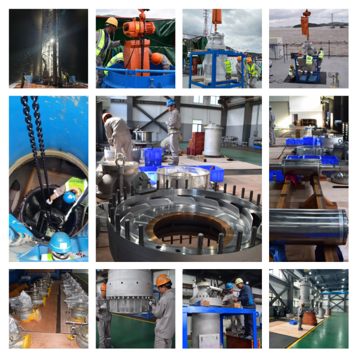 此次修理主要涉及塢內冰區漆涂裝,推進系統、絕緣層安全閥及低溫液貨維護系統等核心設備檢修,主要包括主推進器、發電機檢修,4個液貨艙開艙檢查,貨艙液貨泵、燃氣泵拆檢,低溫閥及貨物壓縮機檢修等。特別是液貨泵的離船檢、修、拆、換,作為精密設備,全程進行了嚴格保護。