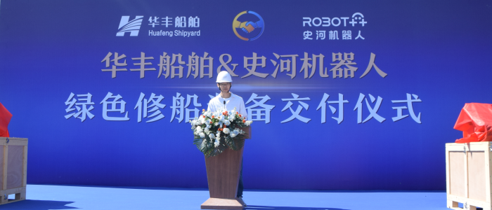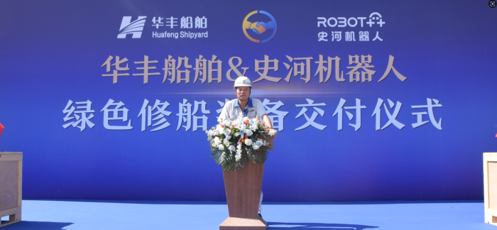 發布時間:2024-08-03 點擊量:32252024年8月3日上午,舟山華豐船舶與史河機器人公司綠色修船裝備交接儀式順利完成。史河機器人創始人&CEO許華旸、COO蒲瀟、工程部總經理劉彥,華豐船舶董事長兼總經理鄔志祥、副總經理舒開鋒等出席儀式,儀式由總經理助理周武佩主持。