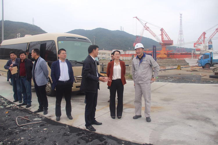 11月14日下午,區委書記莊繼艷帶領區經信科技局、區農林與海洋漁業局、區環保局、區口岸辦等單位主要負責人到位于白泉鎮的舟山市華豐船舶修造有限公司調研,了解該企業發展現狀,并現場協調解決企業遇到的發展難題。區委常委、白泉鎮黨委書記林劍彪,副區長吳紅衛參加調研。